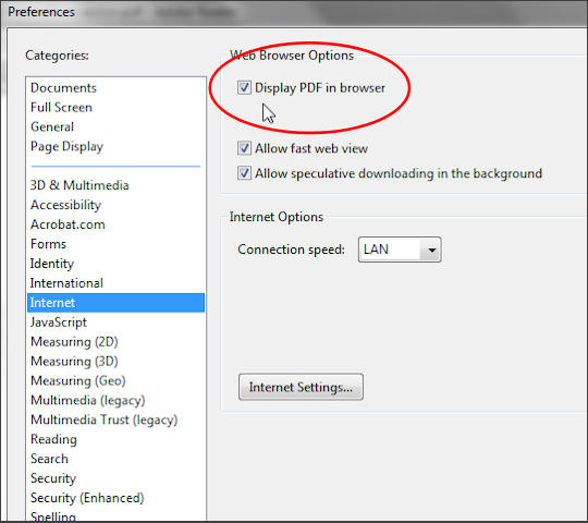 Adobe® ReaderAll our documents are provided in PDF Format. If you do not have a suitable reader program installed on your PC the Adobe® Acrobat® Reader is free and can be downloaded by clicking the link below:Vewing a documentWhen you left-click a Download Button the corresponding PDF (Portable Document Format) file will automatically open in a new tab or window. You can then ‘Print’ or ‘Save’ the document via these options within your browser.Downloading a document directlyTo bypass opening the document in your browser, and download it directly, right-click the Download Button, then select ‘Save Target as...’ to download it. (click image to enlarge it)Configure Adobe® Reader to always download directlyShould you want to set Adobe® Reader to always download a PDF document instead of opening it in your browser, this can be done by adjusting the settings in Adobe® Reader as follows: 1) Run Adobe Reader 2) Click on ‘Edit’ in the Menu Bar 3) Select ‘Preferences’ in the drop down menu list (click image to enlarge it) 4) Click (highlight) the ‘Internet’ category on the left pane 5) Uncheck (untick) the check box for ‘Display PDF in browser’